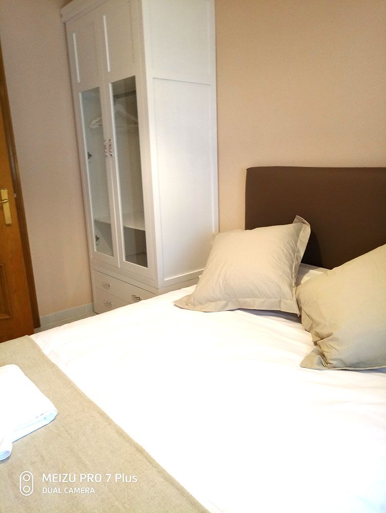 Preciosa estancia que consta de una sola cama de 135 cm. Pintada en el cabecero con un precioso color café con leche, tapizado el cabecero en marrón chocolate y con su mobiliario en color blanco hacen de esta amplia estancia un lugar ideal para hospedarse.
